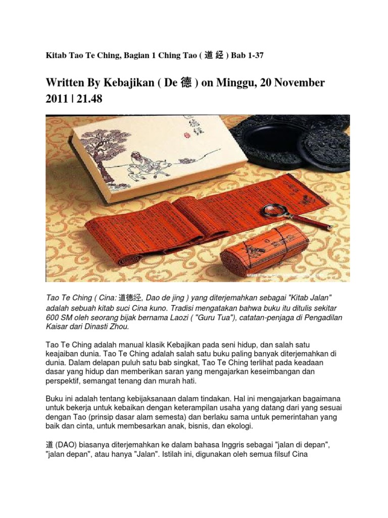 Speaks of practicing restraint achieving balance and learning to know how little we know. Mereka muncul dalam susunan Tetragram di halaman berikut. A Preliminary Investigation of Indonesian Translations of the Tao Te Ching Texts for the sake of Chinese Language and Culture Education in Indonesia Jan 2016 31-36.