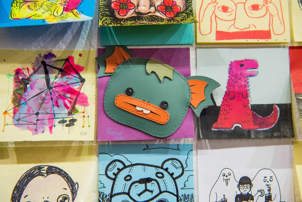 We present the second annual Sticky Note Show. Any 2D media pen pencil paint collage etc that can fit on a standard-sized sticky note is accepted. The show was inspired by the regularly occurring Post-It Show sponsored by Giant Robot Magazine in Los Angeles.